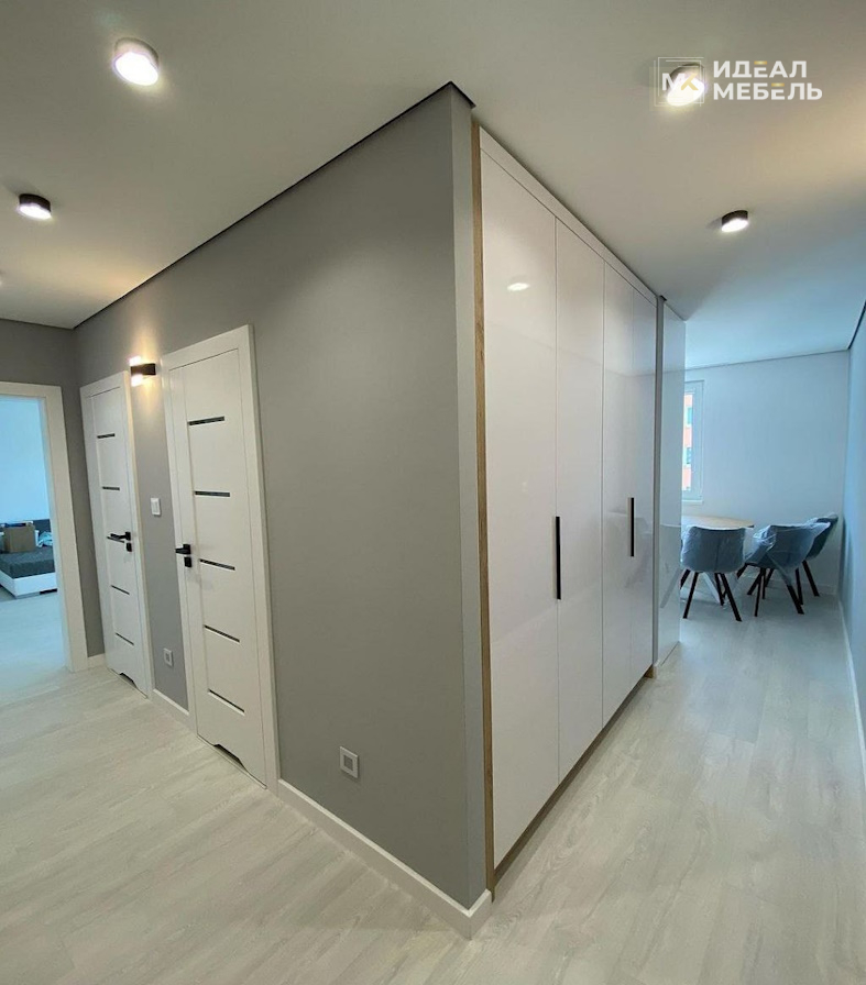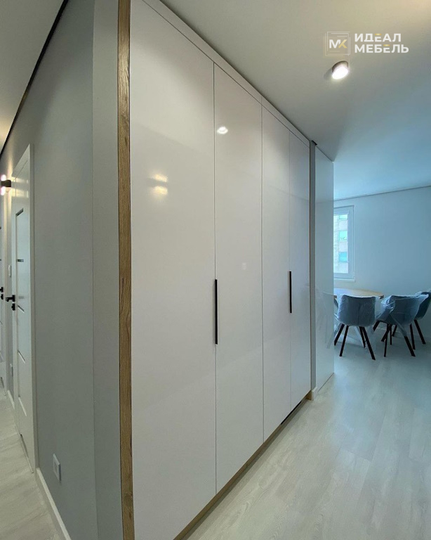 Минималистичный белый распашной шкаф из акрила встроенный в нишу №2