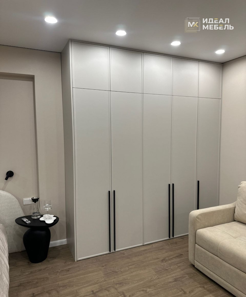 Минималистичный белый распашной шкаф из акрила встроенный в нишу №2