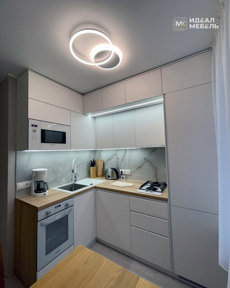 Угловая кухня на заказ — оптимальное решение для маленького пространства.