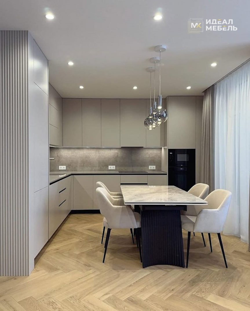 Премиум кухня-столовая с элементами под дерево фасады МДФ крашеный №4