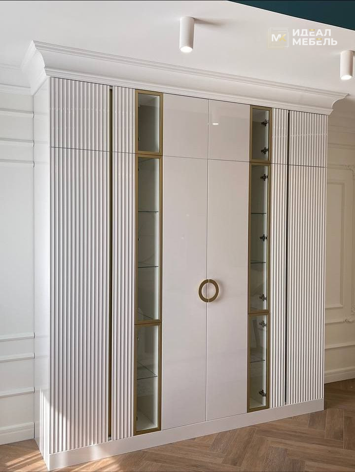 Распашной шкаф неоклассика с карнизом и 3D-фрезеровкой Вельвет №8