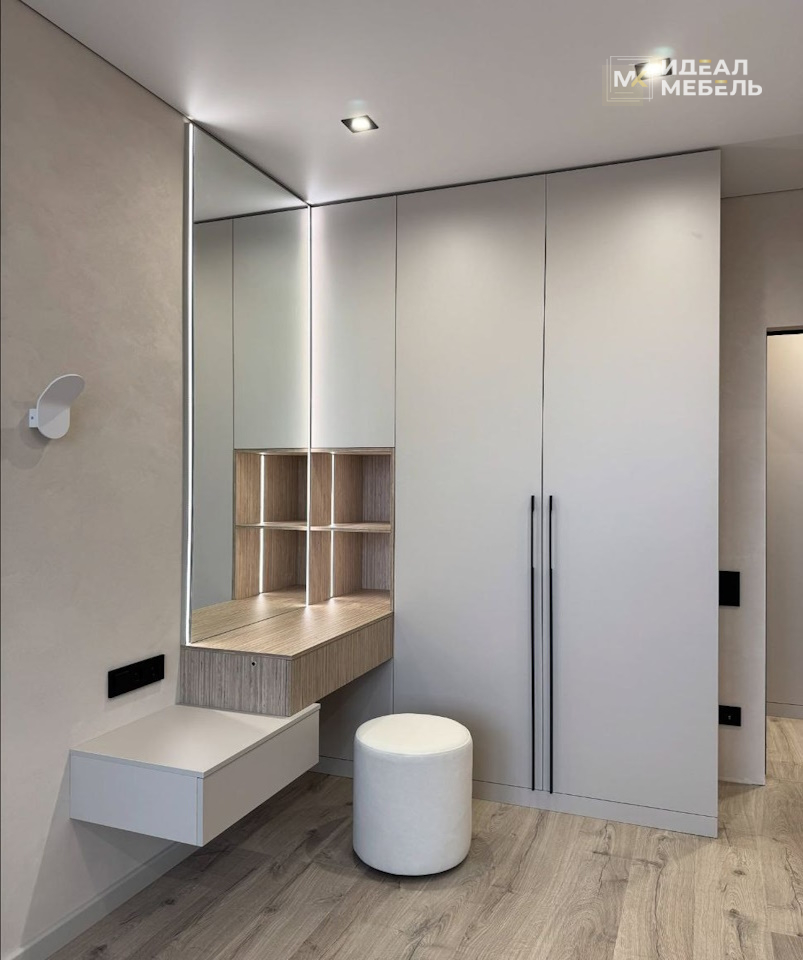 Распашной четырехдверный шкаф с трюмо и полками фасады ЛДСП Egger №14