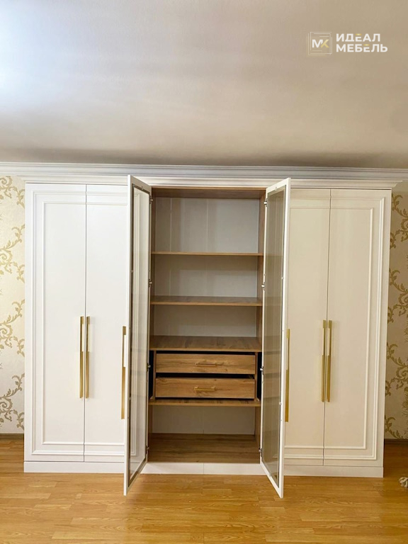 Четырехдверный шкаф для одежды с зеркалом и полками в детскую №1