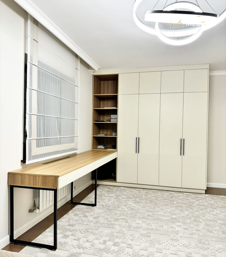 Шкаф 4-х дверный со стеллажом и широким рабочим местом №21