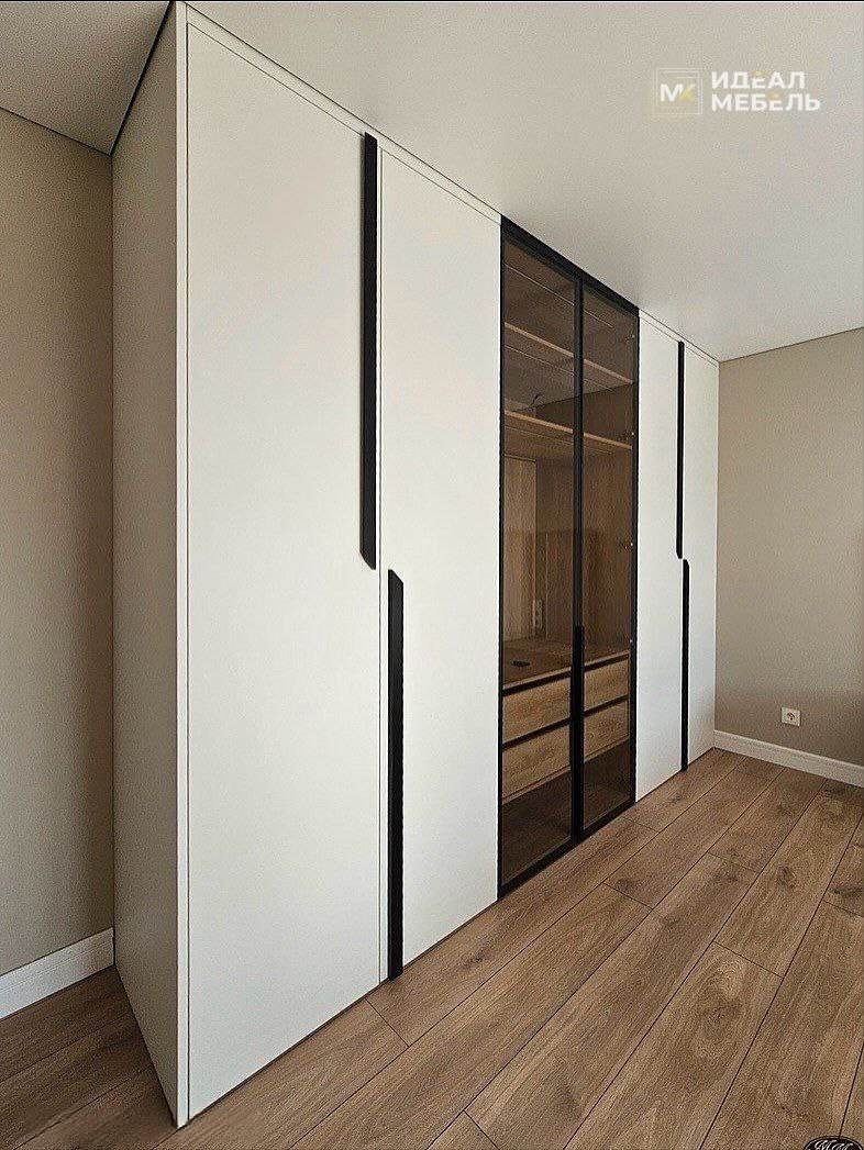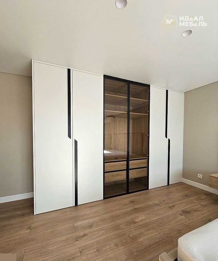 Вместительный гардеробный шкаф со стеклянными дверцами в спальню №2