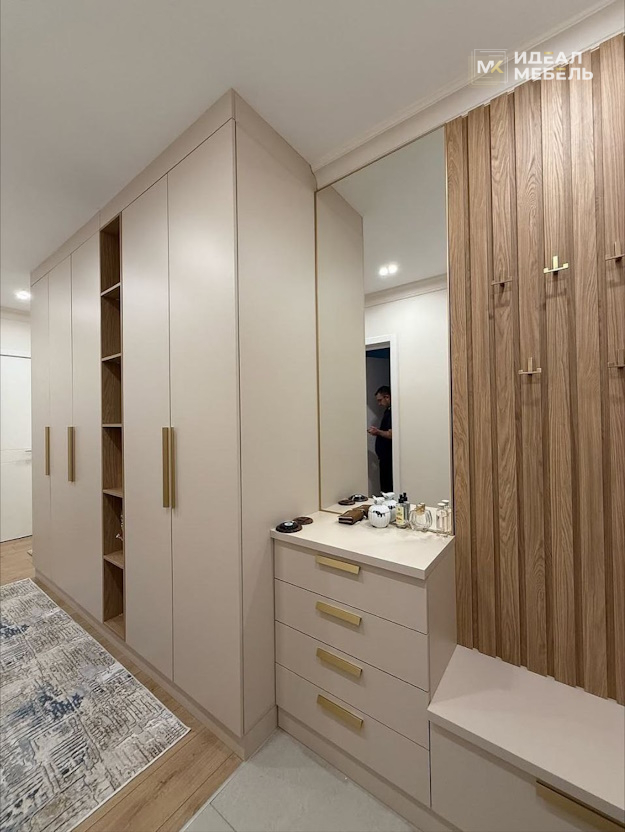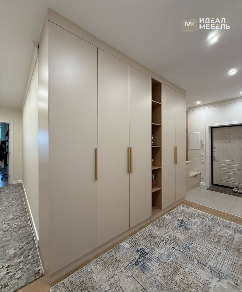 Большой распашной бежевый шкаф с секцией в прихожую №15
