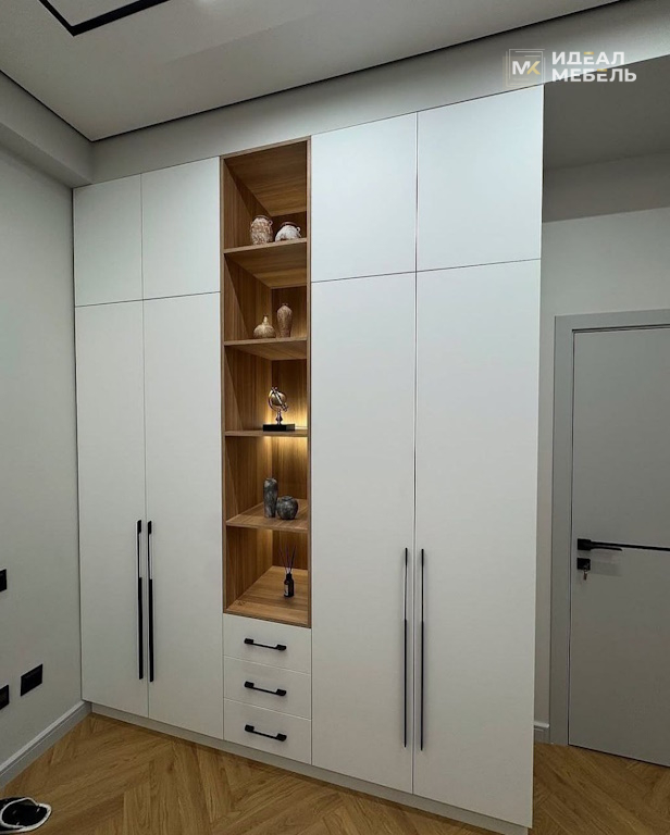 Большой шкаф во всю стену со стеклянной витриной по центру №3