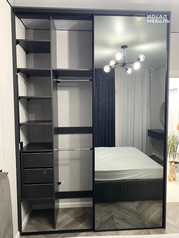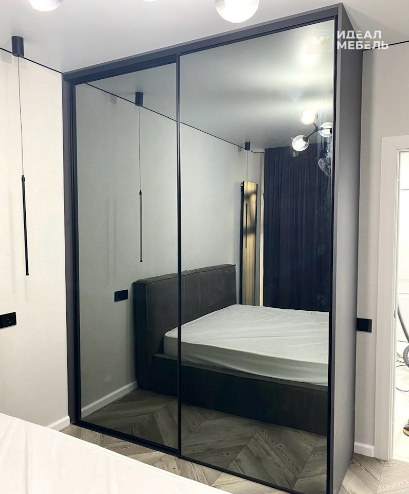 Встроенный двухдверный шкаф-купе с зеркальными фасадами №5