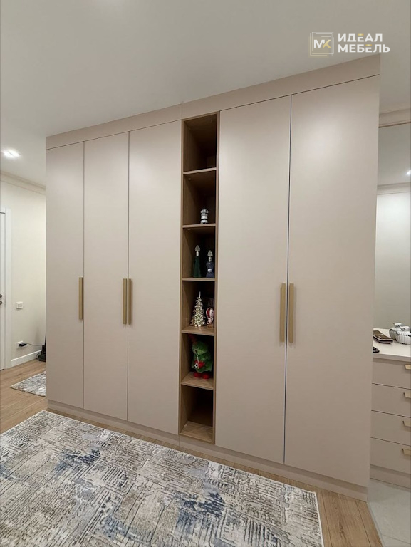 Большой распашной шкаф в бежевом оттенке — стильное и функциональное решение для современной прихожей.