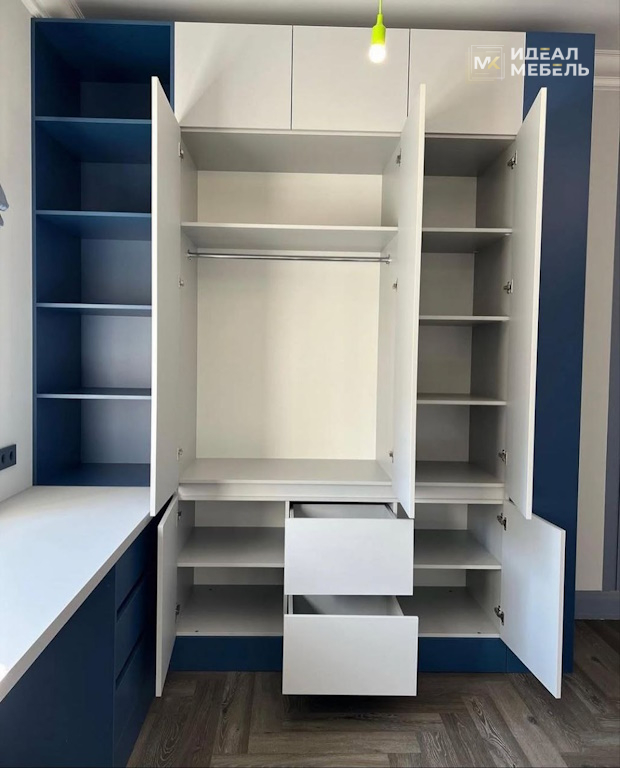 - Внутреннее наполнение: полки, штанги для одежды, ящики