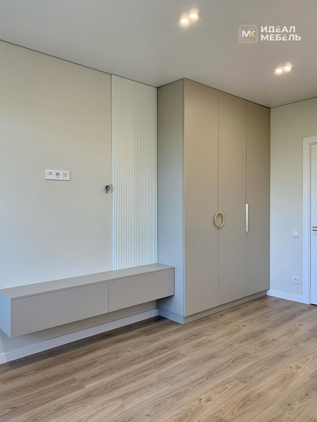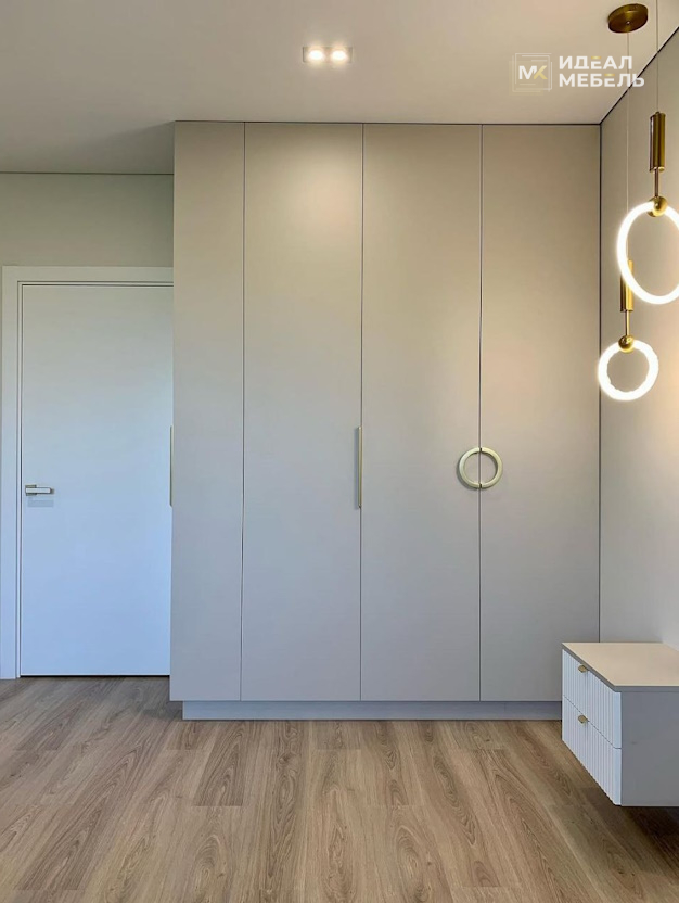 Этот широкий шкаф, занимающий всю стену, — впечатляющее решение для тех, кто ценит масштабное хранение и безупречный порядок в интерьере. Благодаря своей конструкции он максимально использует доступное пространство, создавая эффект цельной и завершенной композиции. Белые фасады придают обстановке легкость и визуальную чистоту, а небольшие ниши добавляют архитектурной выразительности, разбивая строгую геометрию и делая облик мебели более интересным.