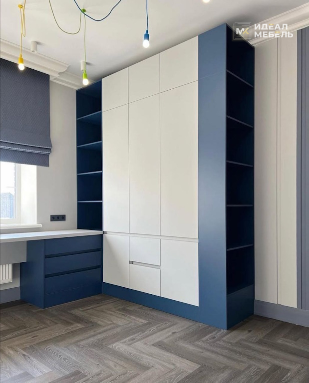 Над столом предусмотрена надстройка с открытыми полками. Они идеально подходят для учебников, папок, декоративных элементов или систем хранения для мелочей. Открытый формат обеспечивает быстрый доступ к самым нужным книгам и материалам, а также позволяет персонализировать пространство: на полках можно разместить фотографии, награды или любимые аксессуары, делая учебную зону уютной и вдохновляющей.