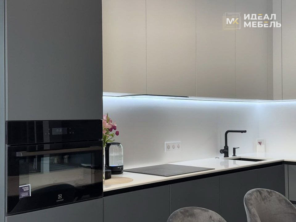 Современная кухня в стиле хай-тек в сочетании серых и белых фасадов — это лаконичное и функциональное решение для интерьеров в современном стиле. Чистые линии, строгая геометрия и отсутствие лишних деталей делают гарнитур максимально удобным и стильным.