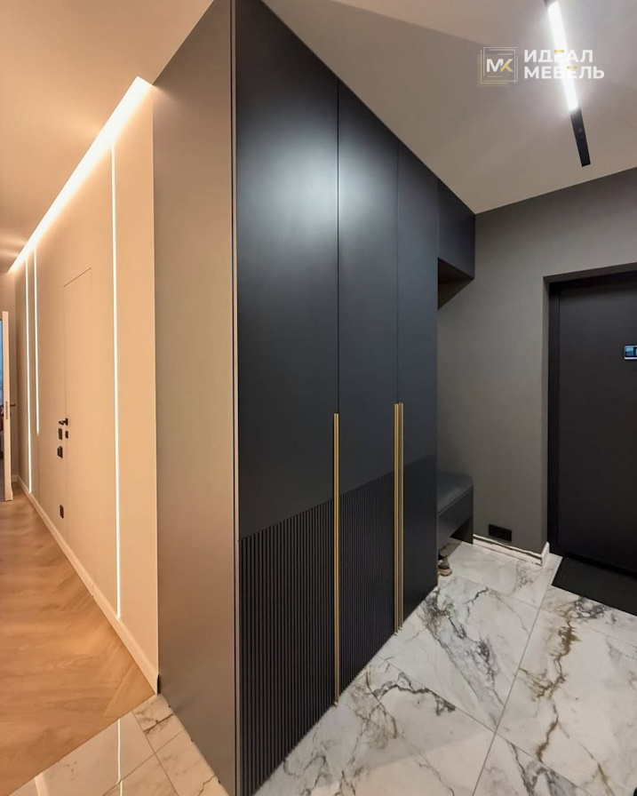Этот шкаф органично вписывается в современный интерьер, сочетает сдержанную элегантность и функциональность, превращая хранение одежды и аксессуаров в удобный и продуманный процесс.
